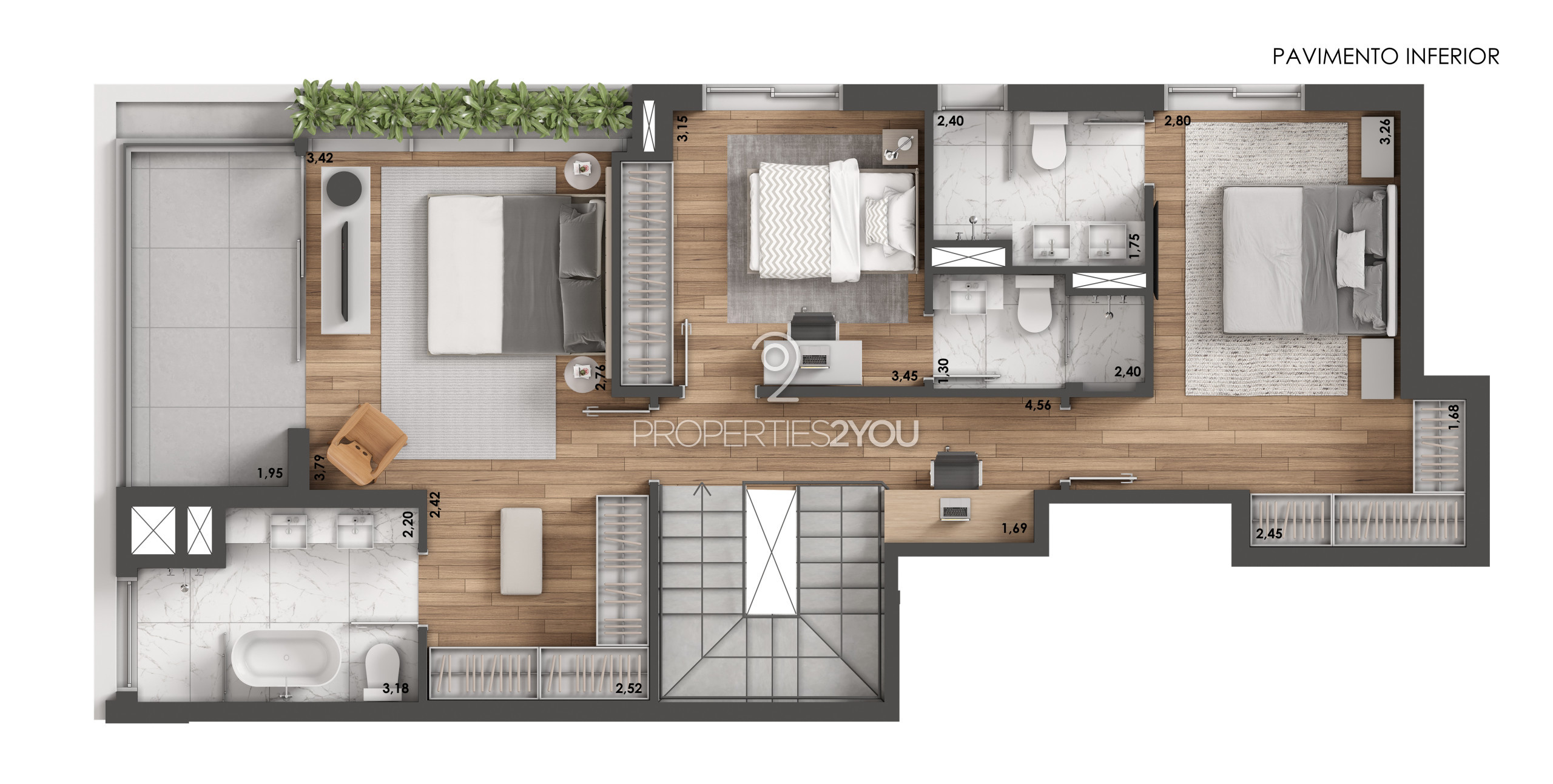 - Piso aquecido nos banheiros dos quartos;