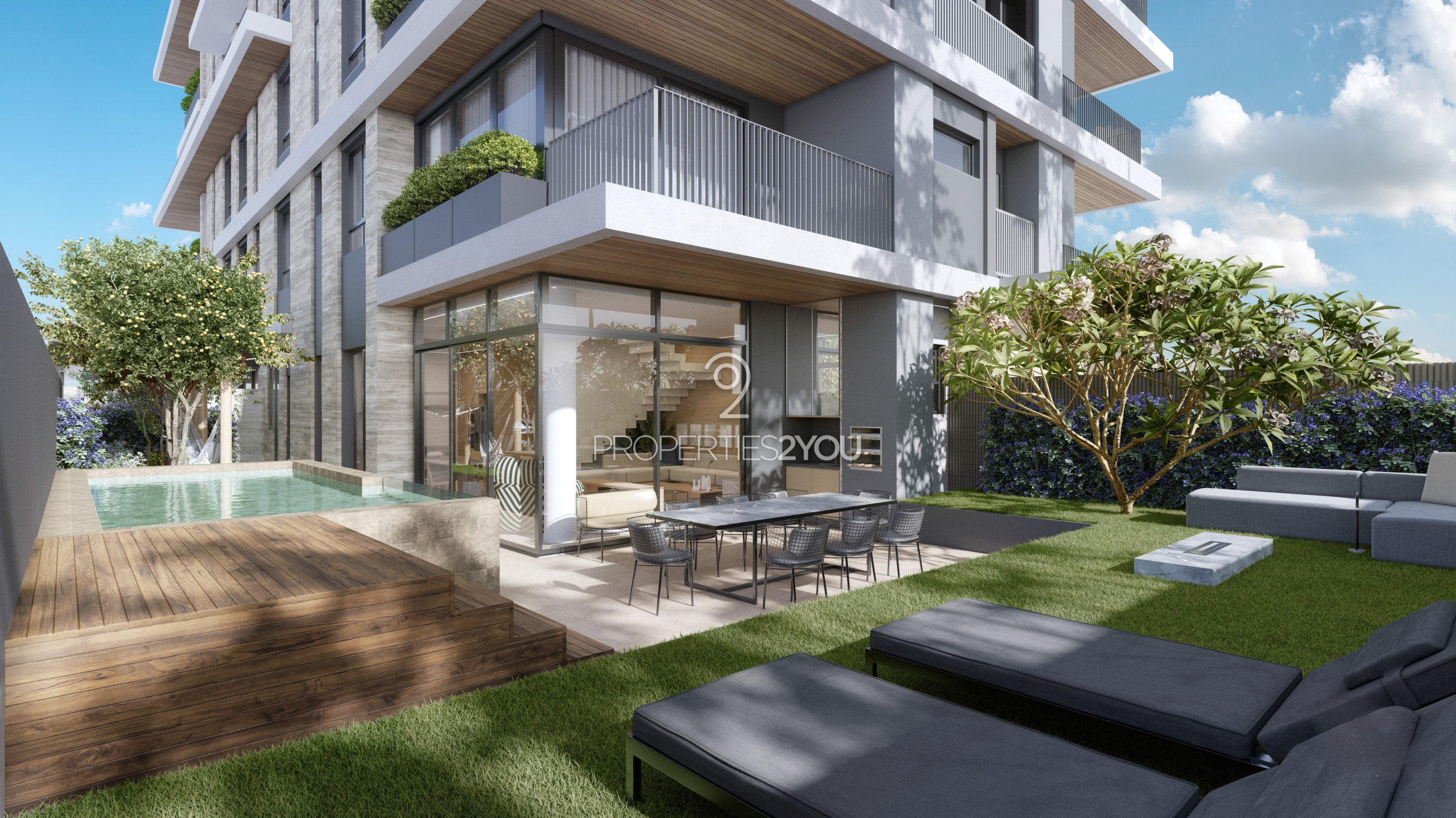 - Paredes duplas entre os apartamentos;