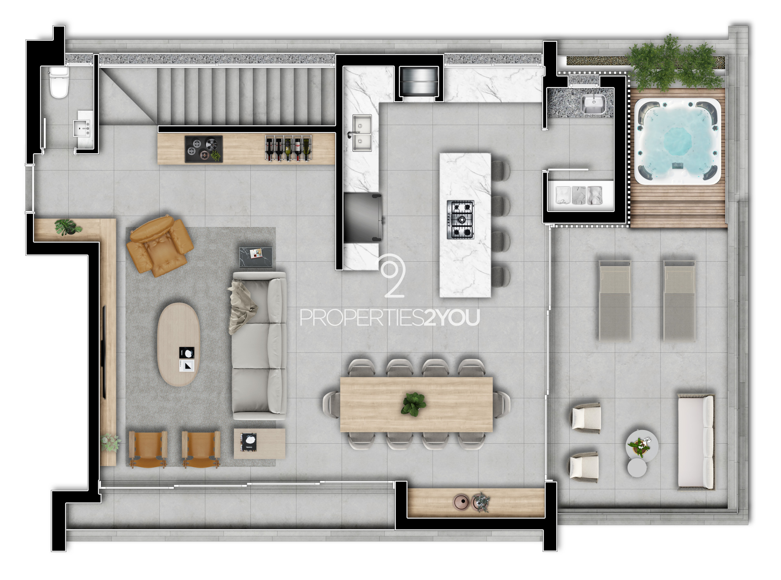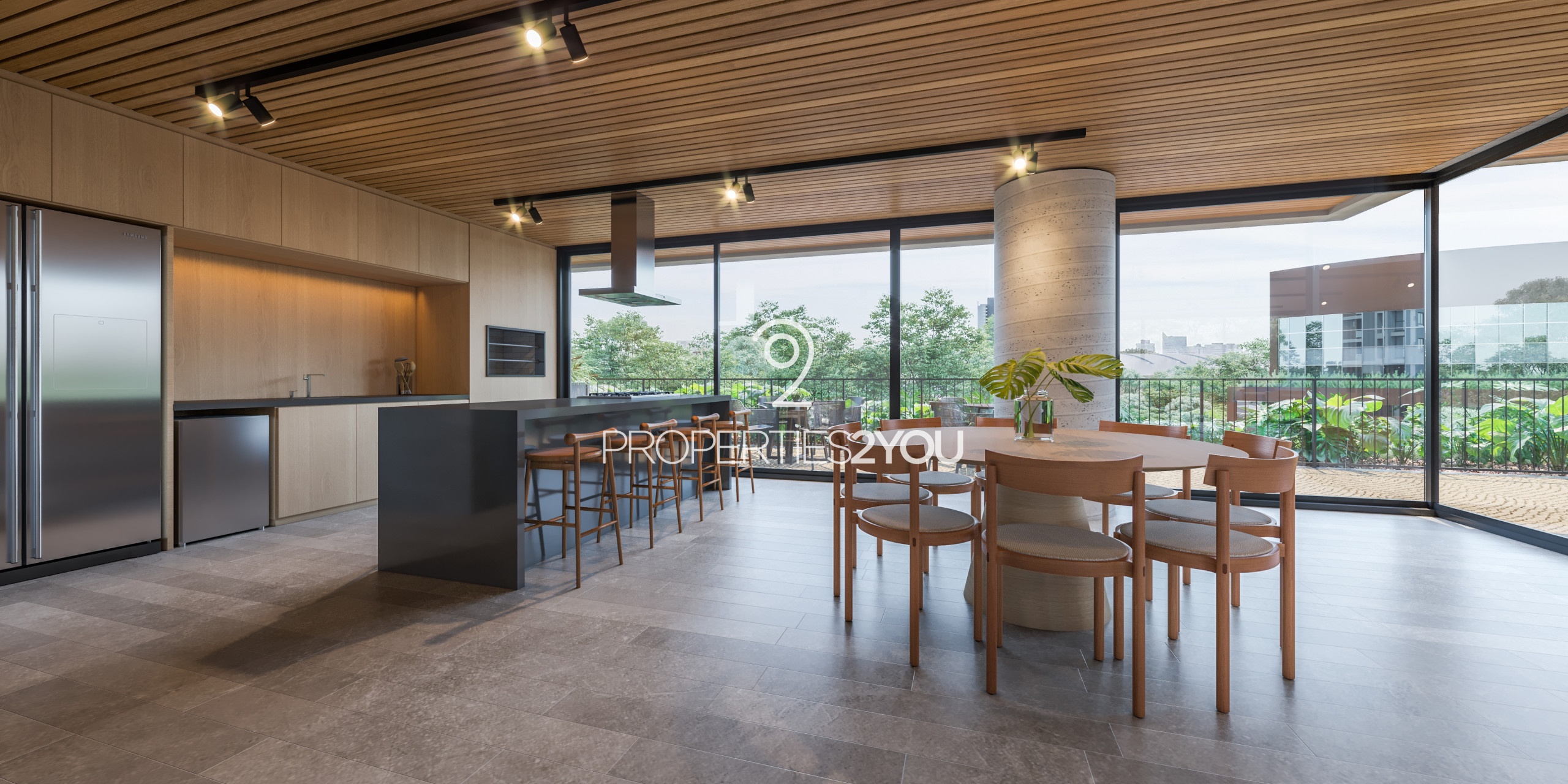 • Cozinha com ilha central e infraestrutura para instalação de coifa e triturador