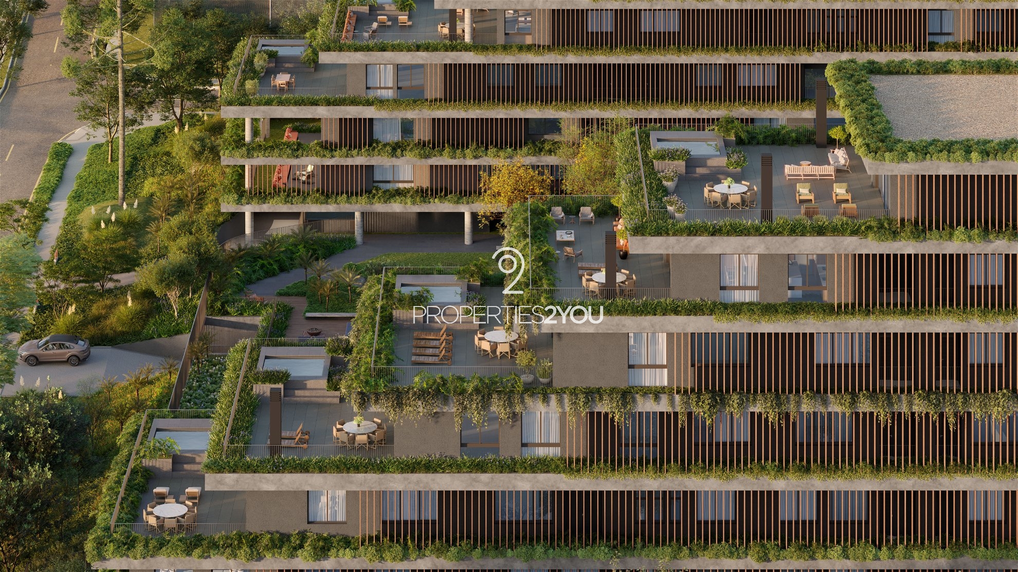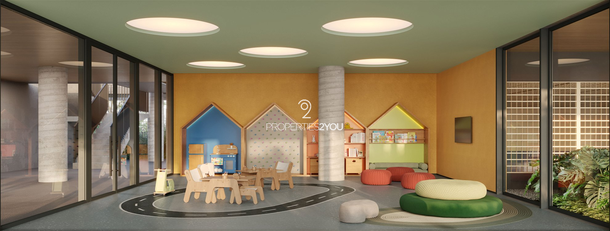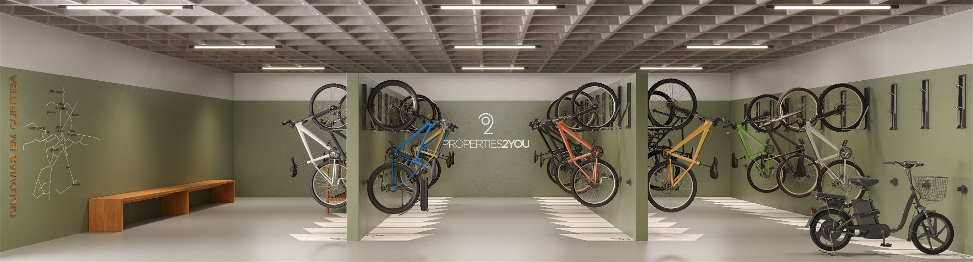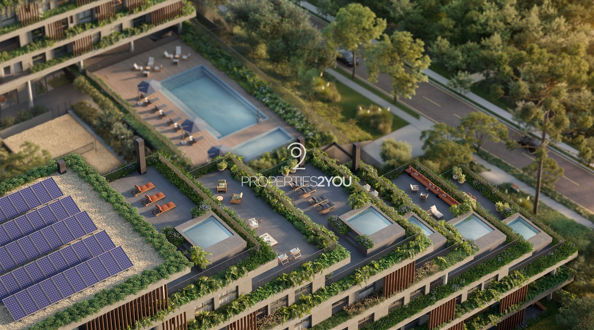 Praça inferior: Acesso a garagem, hall social, bicicletário, brinquedoteca, quadra de areia, salão de festas, gourmet, espaço diversão, jogos, espaço pet, piscina coberta, academia, escritório, depósitos privativos, horta, lounge e vagas de visitante.