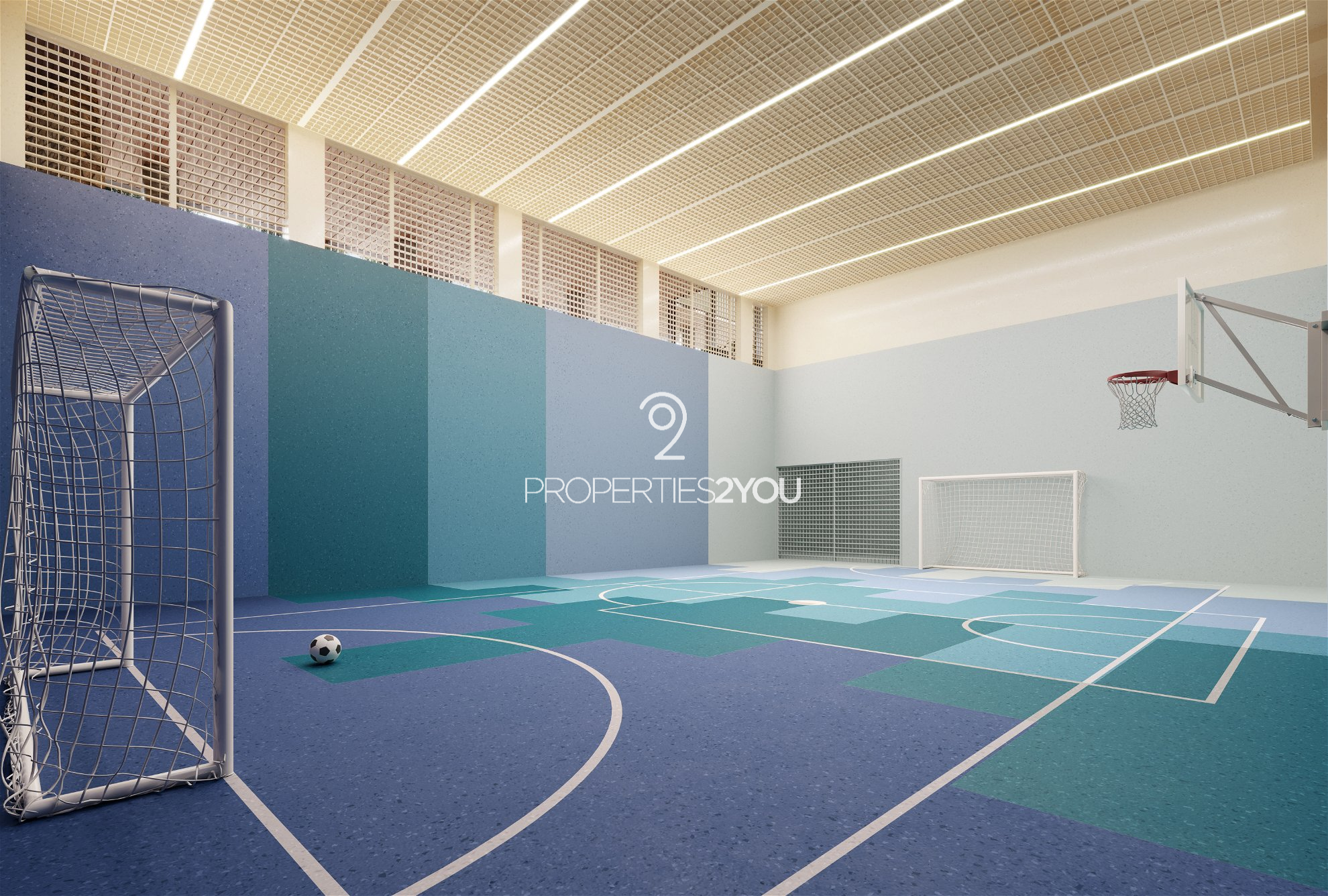 Segundo subsolo: quadra coberta, depósito privativo e hall social.